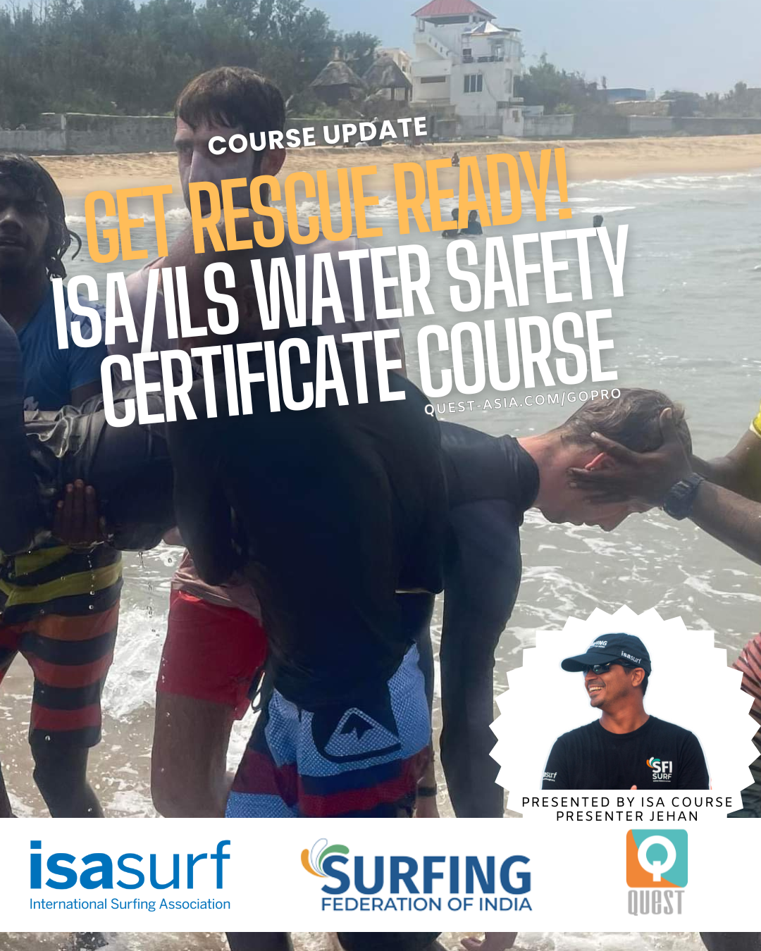 The International Surfing Association (ISA) & International Lifesaving Society (ILS) Water Safety Certification Course is presented by ISA Course Presenter Jehan at Quest Academy near Rameshwaram in Tamil Nadu, India.