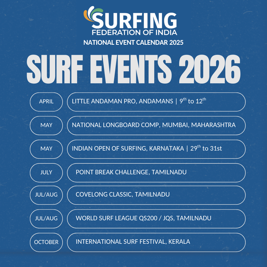 With a broader calendar and new competitive pathways, 2026 is set to be one of the most dynamic and inclusive seasons for Indian surfing, bringing together emerging talent, seasoned competitors, and the growing surf community from across the nation.